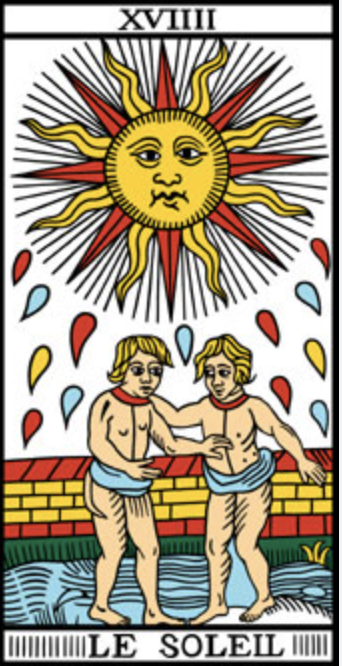 Hace un par de semanas saqué una cita en línea con una tarotista por recomendación de una de mis primas. Como te he soñado con mucha más frecuencia que en los primeros tres años de tu muerte le pregunté por ti. La carta que arrojó de su mazo fue THE SUN. La carta es la siguiente: